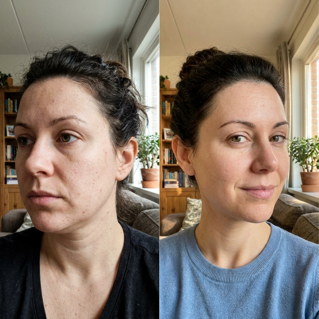 I was skeptical about the red light but my skin looks genuinely more awake. I use it every morning with my serum and it absorbs so much better now. My face feels less tense, less puffy, more alive. It's become the one step in my routine I actually look forward to.